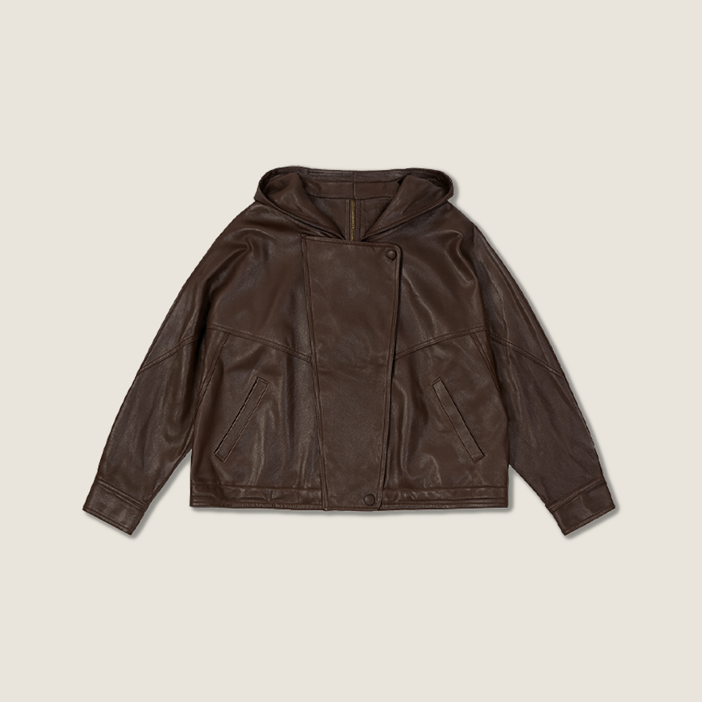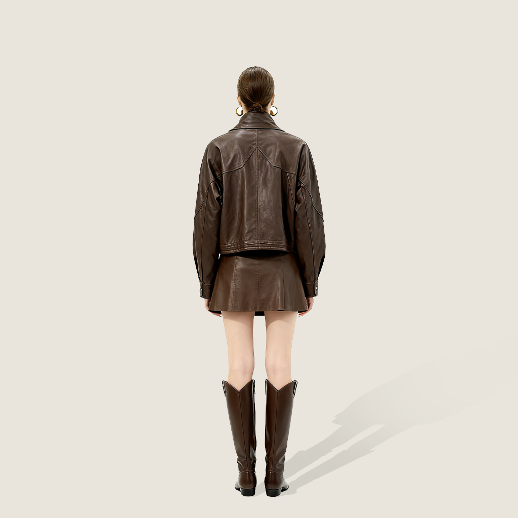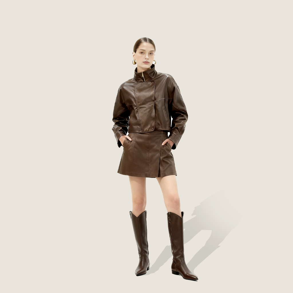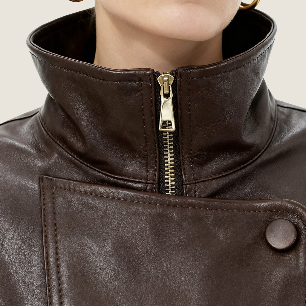 Asymmetric Zip-Collar Lambskin Jacket