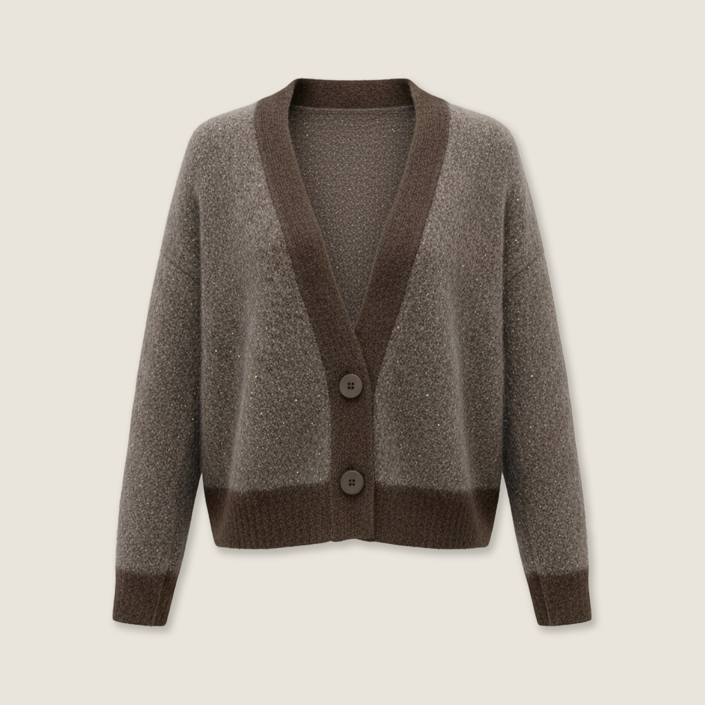 Chocolate Contrast-Trim Mohair Cardigan