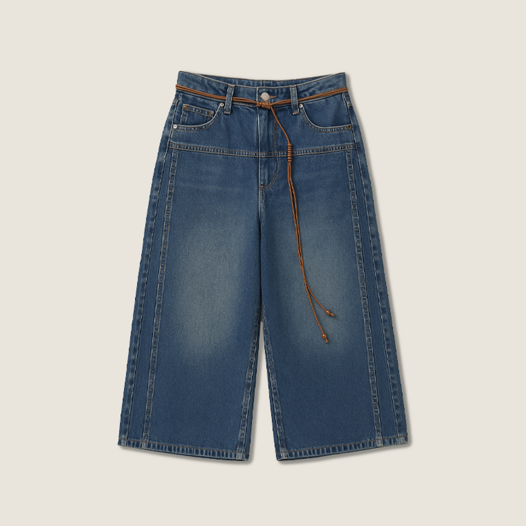 Denim Cropped Wide-Leg Trousers