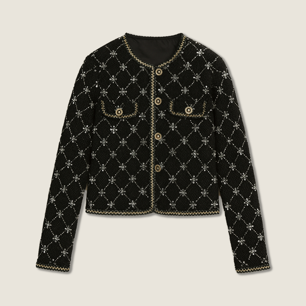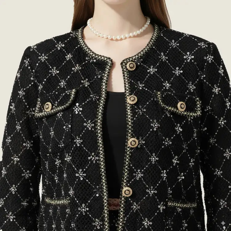 Features: Crafted from refined tweed, this ensemble features intricate floral embroidery, bringing sophistication to its design. The embellished buttons and contrasting trims elevate the piece, adding an air of luxury.