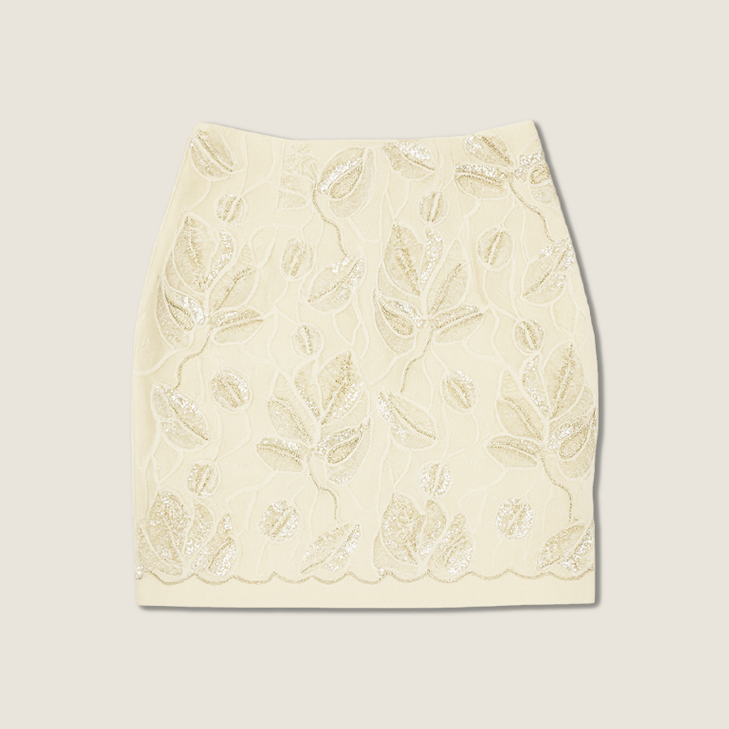 Features: This set features a timeless silhouette with intricate craftsmanship. The designer has combined jacquard mesh fabric with machine and rope embroidery techniques to create a unique, original floral pattern. The fabric's fibers carry a subtle sheen, giving it a luxurious and sophisticated finish.