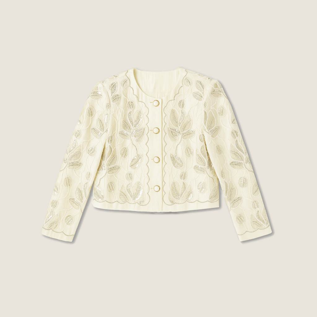 Fit: The classic fit offers a flattering shape, suitable for various body types, while the beaded detailing enhances the overall elegance of the look.