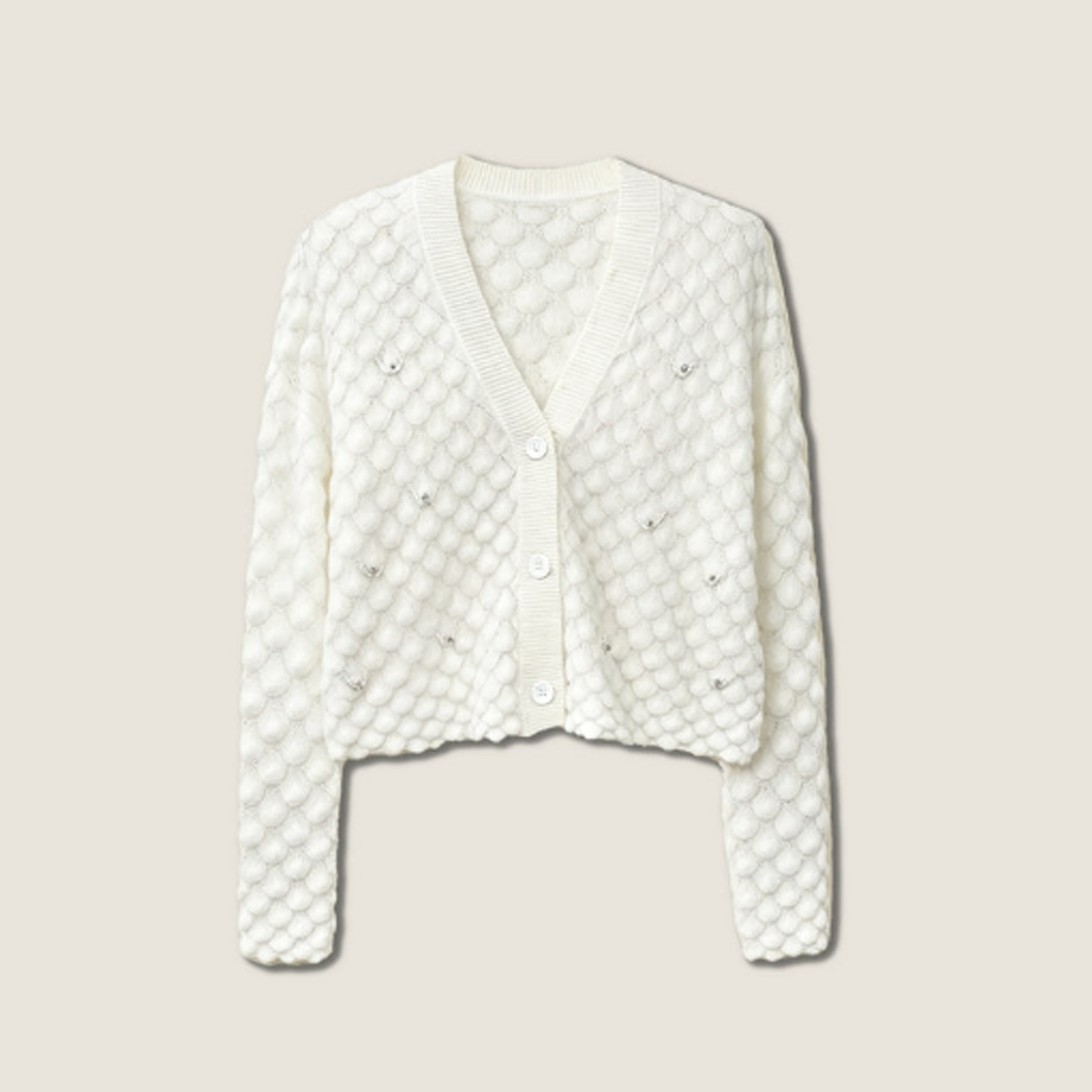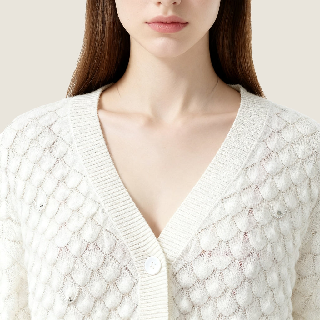 Petal Knit Cashmere Cardigan with Beaded Detail