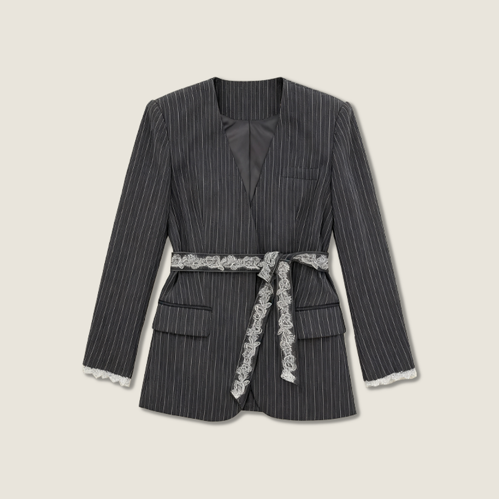 Features: Defined by its sharp tailored silhouette, the jacket showcases a sleek single-breasted design with a waist-cinching belt for added structure. Paired with flared pants, this set creates a harmonious blend of elegance and modern flair, perfect for both formal and casual wear.