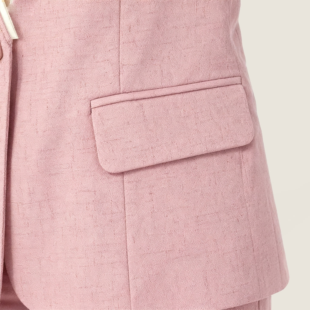 Fit: Designed for a structured fit with a slight flare, the jacket drapes comfortably, while the pants fall gracefully to the ankles, offering a fluid movement that is perfect for both day and evening wear.