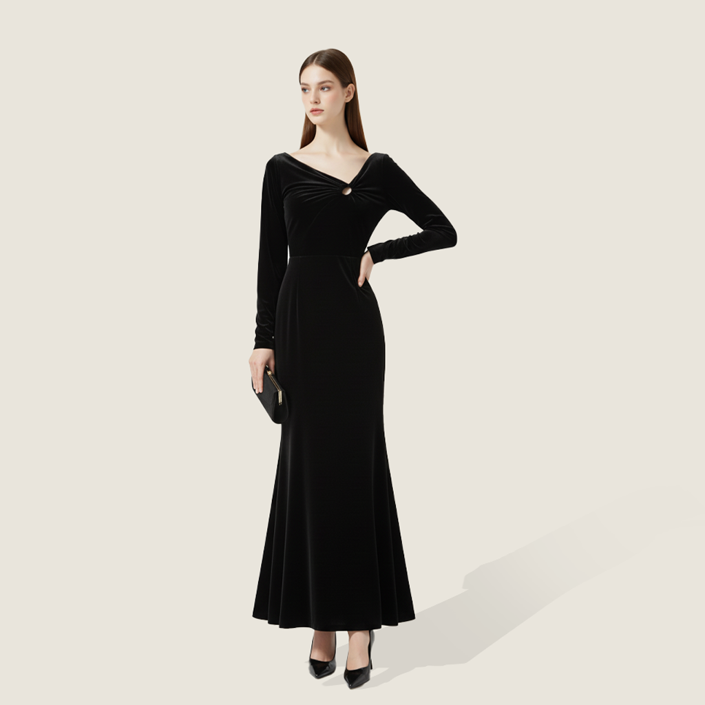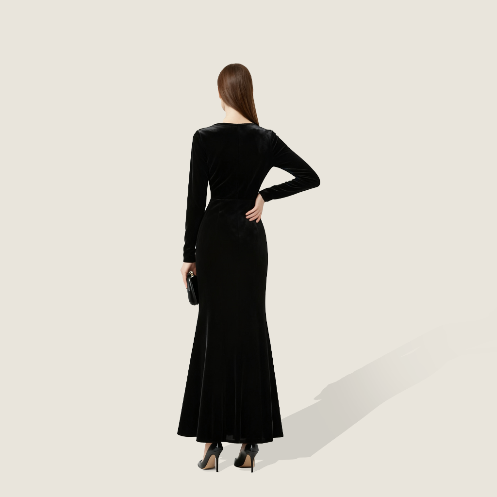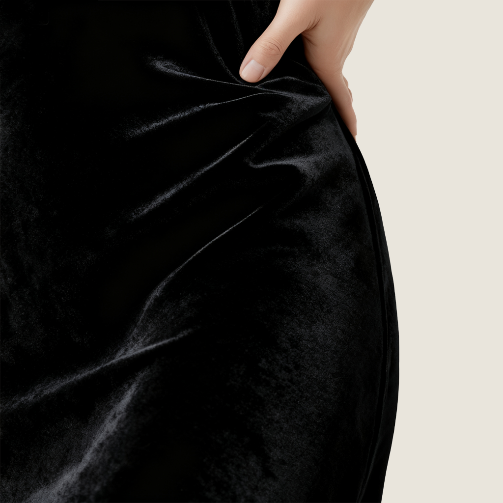 Features: This luxurious velvet two-piece set exudes elegance with its structured, form-fitting top and mermaid-style skirt. The fabric's rich sheen complements the stunning silhouette, making it perfect for evening events.